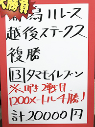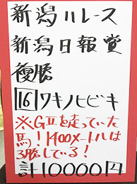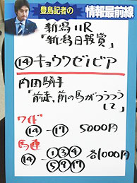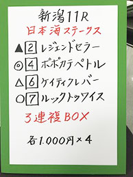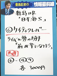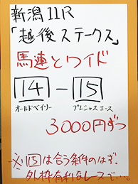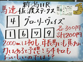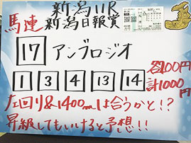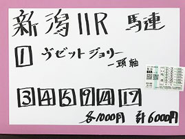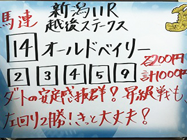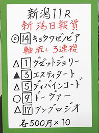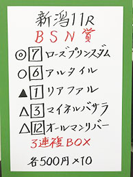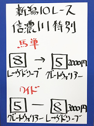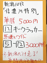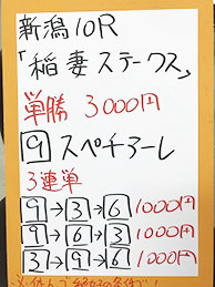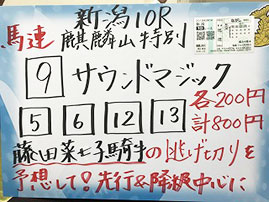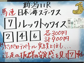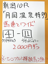 くーずー劇場では、キャプテンさんに、新潟10Rを予想していただきました。