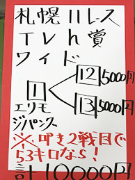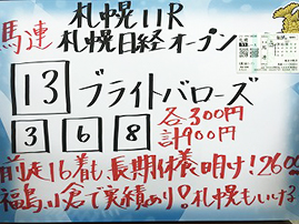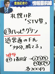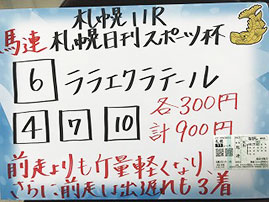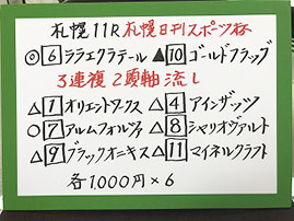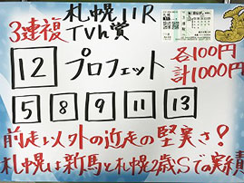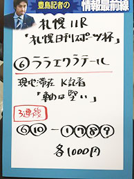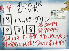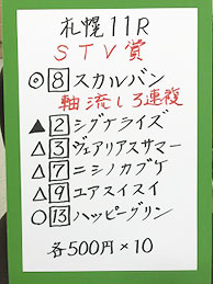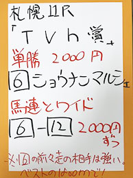 それでは、馬券対決に戻ります。まずは札幌メイン「TVh賞」。