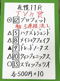 | 日曜札幌11R キーンランドカップ【GⅢ】 | |