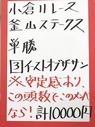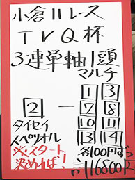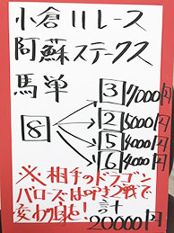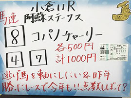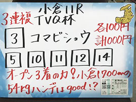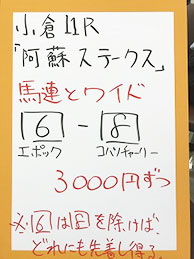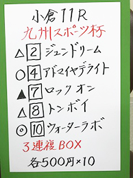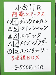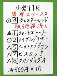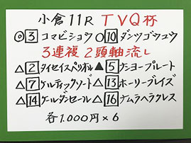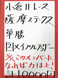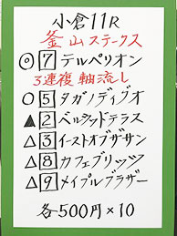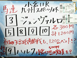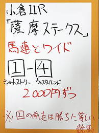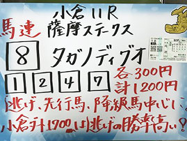 続いて、小倉メイン「薩摩ステークス」の馬券対決です。