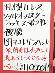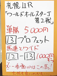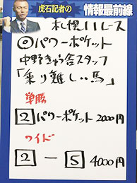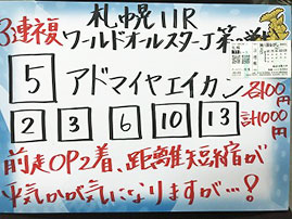 続いて、札幌メイン「2018ワールドオールスタージョッキーズ第2戦」の馬券対決です。