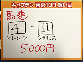 それでは、さっそく東京10Rの予想に参りましょう。結果がこちら。