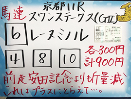 それでは、京都メインGⅡ「スワンステークス」で馬券対決です。