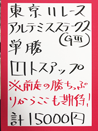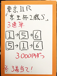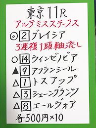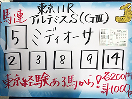 続いては、東京メインGⅢ「アルテミスステークス」で馬券対決です。