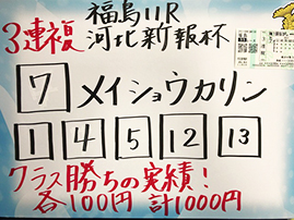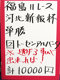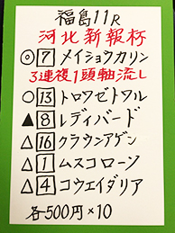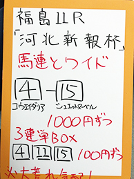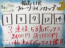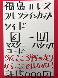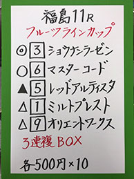 まずは、福島メイン「フルーツラインC」で馬券対決です。