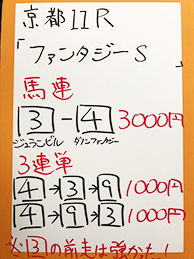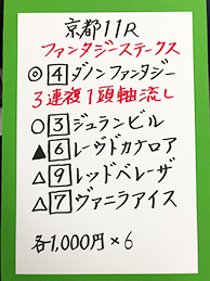 続いては、京都メインGⅢ「ファンタジーステークス」で馬券対決です。