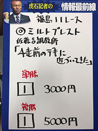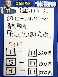 虎石さんは、複勝を的中です!