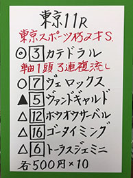 続いては、東京メインで馬券対決ですが、