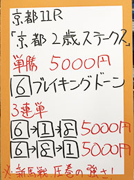 それでは、注目の京都メインGⅢ「京都2歳ステークス」で馬券対決です。