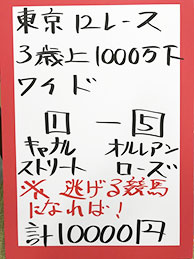 | 東京12R 3歳上1000万下 | |