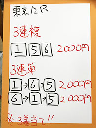 キャプテンさん、3連単を的中!!またしても10万円を超える払い戻しです!