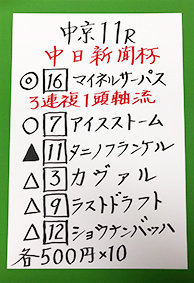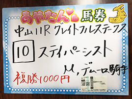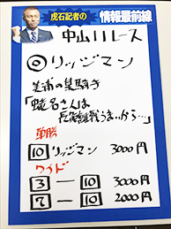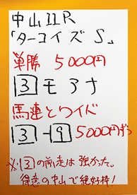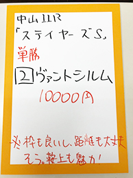 ここからは、再び馬券対決です。中山メインの結果はこちら!