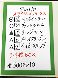 | 中山11R ステイヤーズステークス(GⅡ) | |