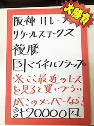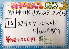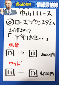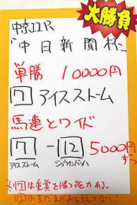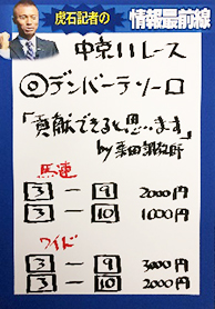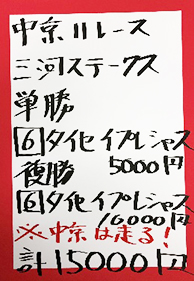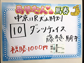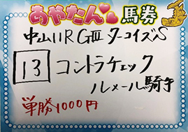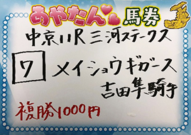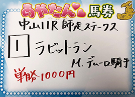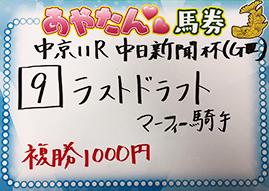 今回も出ました吉沢天狗!馬連を1点で的中です!