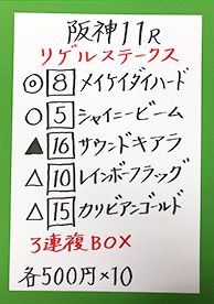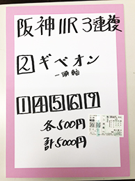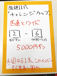 続いては、阪神メインで馬券対決です。結果はこちら!