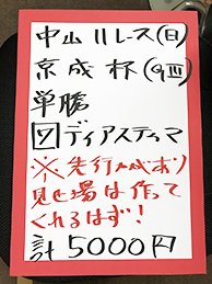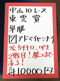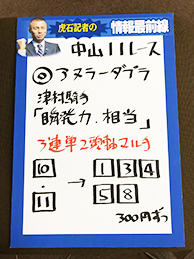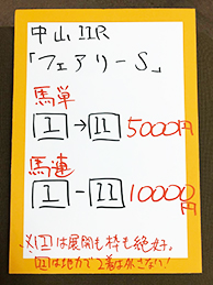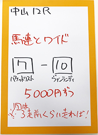 そして放送の最後に、中山12レースで馬券対決です!