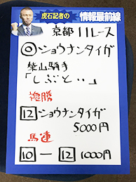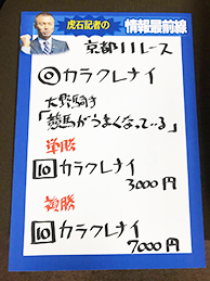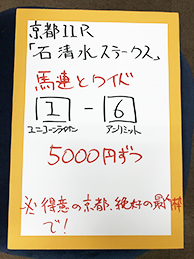 早速、吉原騎手とキャプテンさんが京都10Rで馬券対決!!