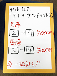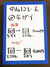ここからは、再び馬券対決です。中山メインの結果はこちら!