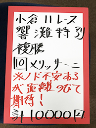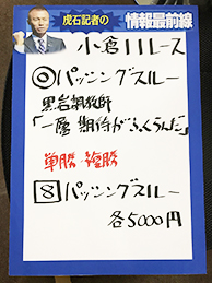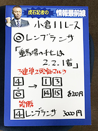 それでは、再び馬券対決です。小倉メインの結果はこちら!