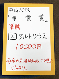 それでは、さっそく馬券対決に参りましょう。まずは中山10Rの結果です!