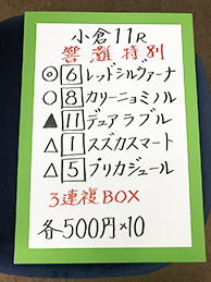 | 小倉11R 響灘特別 | ||