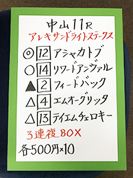 | 中山11R アレキサンドライトステークス | |