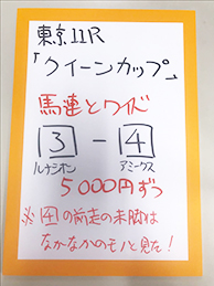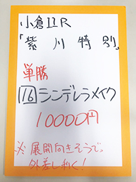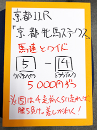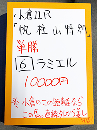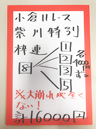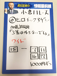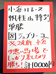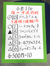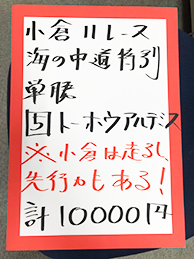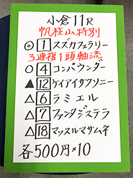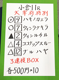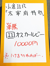 それでは、再び馬券対決です。小倉メインの結果はこちら!