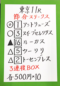 | 東京11R ダイヤモンドステークス【GⅢ】 | |