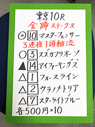 それでは、さっそく馬券対決に参りましょう。まずは東京10Rの結果です!