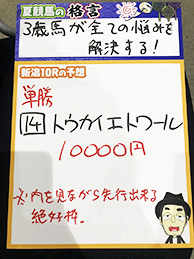 それでは早速、馬券対決に参りましょう!まずは、新潟10Rの結果です。