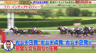 直線でのムチの持ち替えなど、完璧な立ち回りだったと評します。