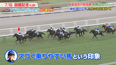 他にも、8月2日新潟6Rの騎乗を、「まるでスミヨン騎手のようだった」とこちらも大絶賛。