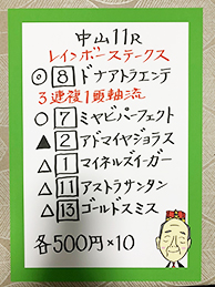 それでは早速、馬券対決に参りましょう!まずは、中山10Rの結果です。