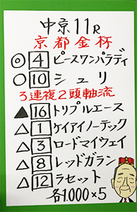 2年連続で3連単10万円超えの配当、「中山金杯」と、今年は中京で開催される、