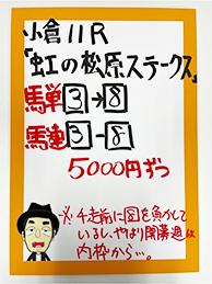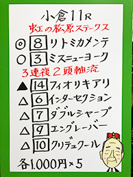 それでは、馬券対決に戻ります。小倉メイン「虹の松原ステークス」の結果です!