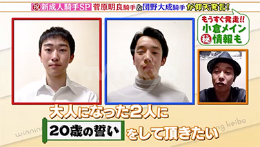 「若駒ステークス」をお届け!さらに、先日新成人となった2人の騎手に直撃取材!