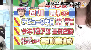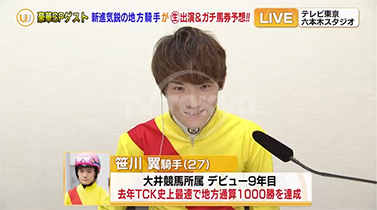 TCK史上最速の地方競馬1000勝達成をしている笹川翼騎手に、