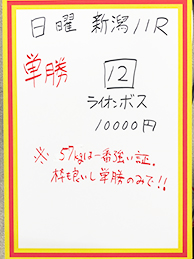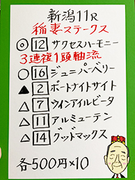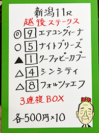 | 日曜新潟11R 関屋記念【GⅢ】 | |