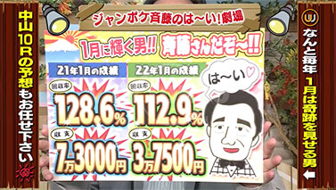 去年、一昨年と1月の成績が素晴らしい斉藤さん!