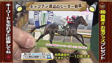 応募方法はTwitterのテレビ東京公式競馬チャンネルをチェック!!