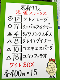 次に、京都メイン「朱雀ステークス」の結果になります。