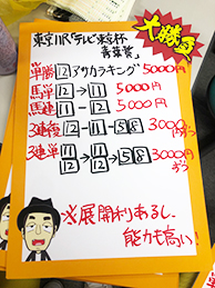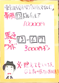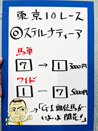 虎石さんがワイド2点、大久保先生が3連複を的中です!おめでとうございます!