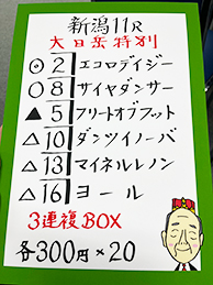 続いて、新潟メイン「大日岳特別」の結果になります。
