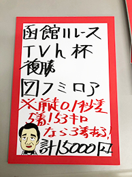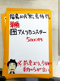 早速く〜ず〜劇場からファンの方と馬券対決です。