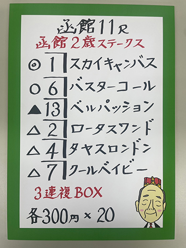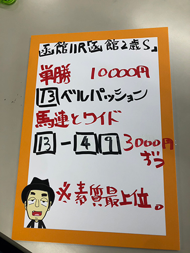 続いては函館メイン「函館2歳ステークス(GⅢ)」の結果になります。