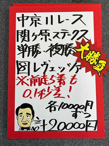 大久保先生は先週中京メインで3連複81.5倍的中!