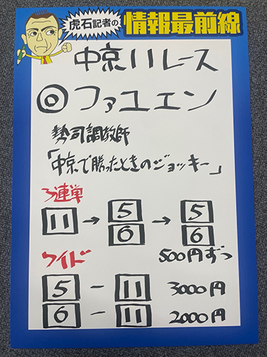 今週もファンの目の前で的中、そして再び全員的中となるのでしょうか?