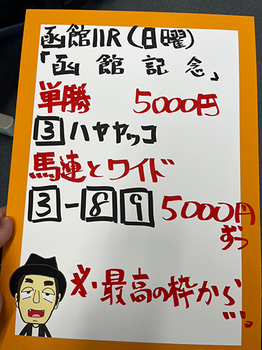 函館記念を的中させてタコ踊りで締めたいと激励のメッセージが!