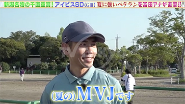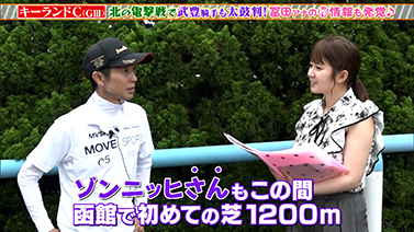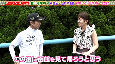 インタビューの最後に函館のオススメグルメを武豊騎手に尋ねた冨田アナ。