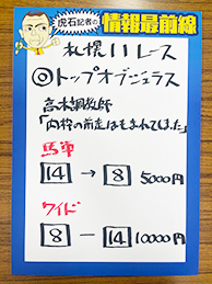 斉藤さんとキャプテンさんの福島開催での成績をフリップで紹介しました!